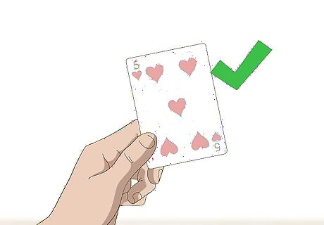 Ask the audience to look at the card while keeping it hidden from you. Showing you the card defeats the purpose of the whole trick. You can even close your eyes or look away to ensure you don’t see it. If they accidentally do reveal the card, start the trick over.
