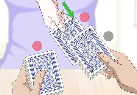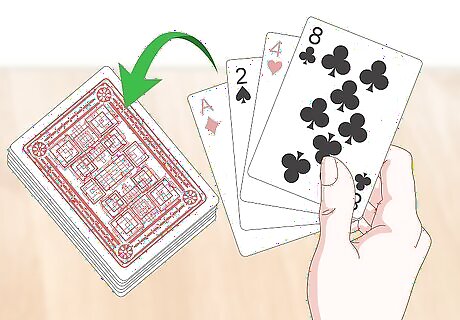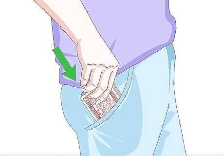 Slide the deck of cards into your pocket. Be careful not to jumble the cards as you put them in your pocket. You want the ace, 2, 4, and 8 to stay on top. Remember which side of the deck is the top when you hide the cards. If you don’t have a pocket, hold the cards under a table or anywhere hidden where the audience can’t see them.