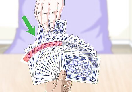 Split the deck and have them set the card in the half that's the other color. If your audience member chose a red card, pull the deck apart in the black section and ask them to place the card there. This ensures you’ll be able to locate the card in the deck. Don’t put the card back in the deck yourself. Otherwise, your audience might accuse you of rigging the trick. Keep all of the cards face down the entire time. Fun Ways to Enhance Your Trick Tap a magic wand on the deck before you pick their card. Wear a magician costume, including a fancy top hat, for the full effect. Take a long time to pick out their card to build suspense. Sprinkle “magic dust” on the cards. Use glitter or confetti as the dust.