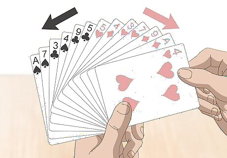 Sort a deck of cards by color and put the black half on top of the red half. It doesn’t matter what order the suits or numbers are in. Stack the cards neatly in 1 pile, so that all of the black cards are at the top of the deck and all of the red cards are at the bottom. You can also put the red half on top of the black half. Whichever way you choose, make sure you remember which color is on top. Set this up before your audience is there. Otherwise, they’ll know how the trick is done!