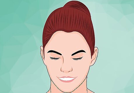 Tilt your head back. It might be a good idea to close your eyes and pull your hair back. If you have very short hair, consider clipping it out of the way with bobby pins.