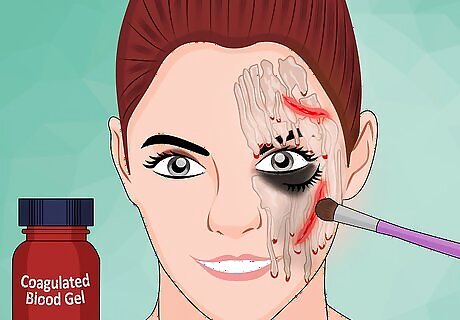 Add final touches. For a melted Barbie doll or fashion model, pop on some false eyelashes. Consider applying one of the falsies into the melted part of your face. It will look like it slid off. For a gorier look, fill in the crevices between the dribbles with coagulated stage blood. Add some scars with rigid collodion. You can get rigid collodion from costume shops and online shops specializing in theatrical makeup.