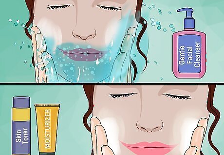 Start with a clean, prepped face. Wash your face using a gentle facial cleanser, and pat it dry. Apply some toner, and then moisturizer. Let the moisturizer absorb into your skin.