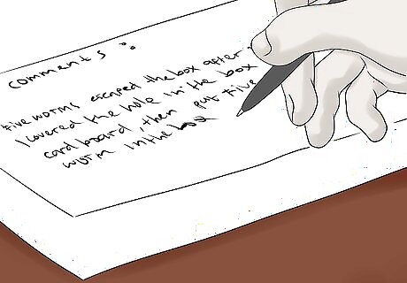 Include a comments section. If you have enough paper, you can include a "Comments" section on your chart. You can also write this on a separate page. This just gives you a chance to mention anything unusual that affected your experiment, such as "Five worms escaped the box after experiment four. I covered the hole in the box with cardboard, then put five new worms in the box."