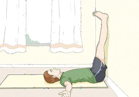 Lie on your back with your legs up against a wall. Sit down on the floor in front of a wall and slowly walk your feet up. As you move your feet higher, scoot your bottom closer to the wall until you press up against it. Keep your legs straight and put your arms out to your sides. Press your upper back into the floor and take a few deep breaths to relieve your stress. You might feel a tingling feeling in your feet in this pose, but that’s normal. If you do, bend your knees and touch your feet together. Try to bring your feet down the wall closer to your hips.