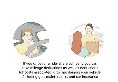 Absolutely! You can take mileage deductions as well as deductions for costs associated with maintaining your vehicle, including gas, maintenance, and car insurance. In fact, if you have any income as an independent contractor, you can deduct business expenses that are related to the work you do for that income. Since you likely also use your vehicle for personal reasons, you have to apportion things like insurance and maintenance costs. Add up the total hours you drive and then figure out the percentage of those hours that you're ride-sharing. For example, if you spent 25% of your total drive time ride-sharing, you could deduct 25% of your insurance and maintenance costs. There are other deductions you might be able to take as well. For example, if you keep water bottles or snacks in your car for your fares, wash your car before you go out to ride-share, or buy special lights or other decorations to make your car stand out, you can deduct the cost of those things as business expenses.