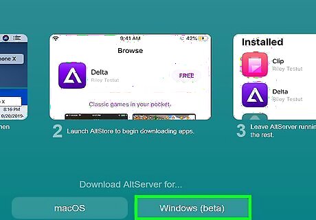 Download AltServer. Click on Windows at the bottom.