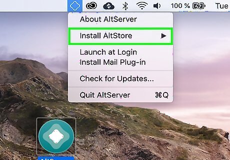 Click on the AltStore icon in your menu bar at the top. It looks like a rounded diamond. Select Install AltStore, then select your device. If you cannot see your device, make sure Wi-Fi sync is enabled.