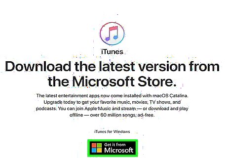Download the latest version of iTunes from the Apple website. Do not download it from the Microsoft Store. To download, open a browser and navigate to https://www.apple.com/itunes/. Click Windows at the bottom next to "Looking for other versions?". Click Download iTunes for Windows now (64-bit). Or, select the 32-bit version if you are running the 32-bit version of Windows.