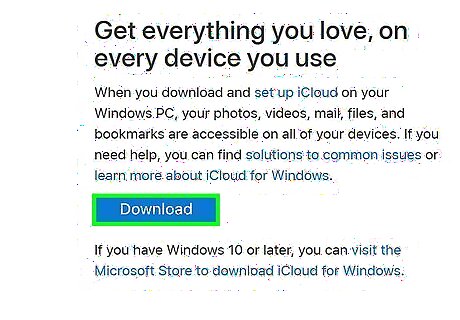 Download the latest version of iCloud from the Apple website. Do not download it from the Microsoft Store. To download, open a browser and navigate to https://support.apple.com/en-us/HT204283. Click Download.
