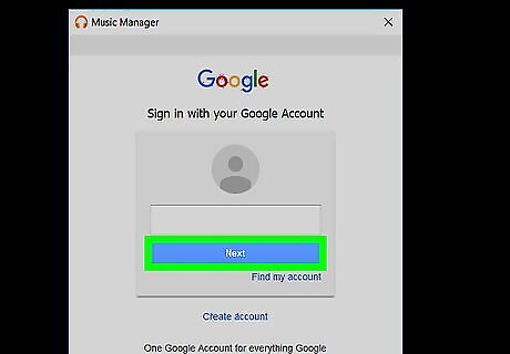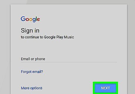 Sign in with your Google account. Enter your Gmail address and password to log into the Google Account you use with Google Music.