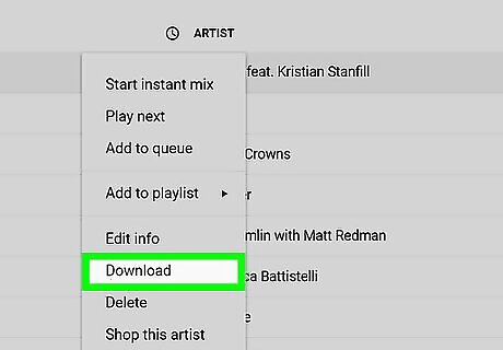 Click Download or Download Album. If you don't see this option you might not own the rights to download the music. Click Buy to purchase song.