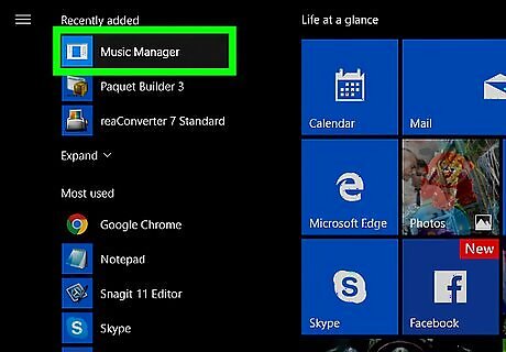 Open Music Manager. Double-click the icon with the orange headphones found in the "Recently Added" section of the Start Menu on Windows, or found in the "Applications" folder on Mac.