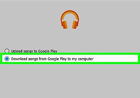 Select Download songs from Google Play to my computer. Click the radio button next to "Download songs from Google Play to my computer" so it is highlighted and click Next or Continue.