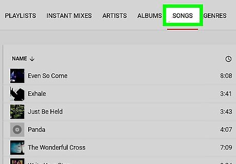 Click the Albums or Songs tab. It's at the top of the page under the search bar.