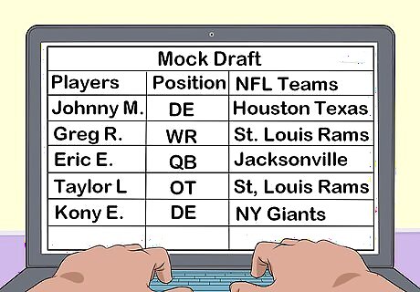 Look at mock drafts. Chances are most people in your league will be going off of an expert’s mock draft, so you’ll have a good idea when most players will get drafted. Studying a mock draft for potential sleepers (late-round players with a chance of outperforming their value) can pay dividends later in the season. Check out ESPN or CBS Sports for some helpful mock drafts.