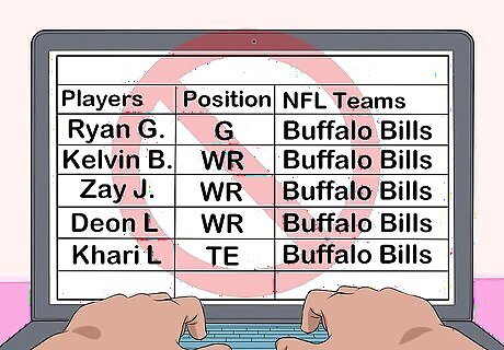 Don’t draft all players from your favorite team. It’s always best to diversify your team so one bad loss doesn’t wreck your whole week. Try to keep it to two or three players from the same team at a maximum.