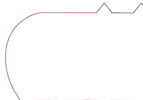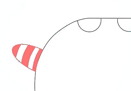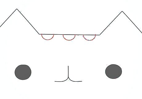 Draw the lines of Pusheen's head. Draw three semicircles on the line that is connecting the ear.