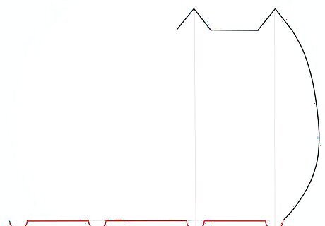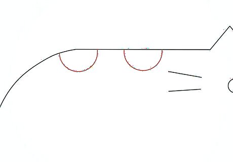 Draw the legs of Pusheen. Draw a semicircle aligned with each of the ears. Draw a line to connect the legs. Draw a horizontal line, starting from the leg, longer than the length of the line connecting the first two legs. For example, if the line connecting the first two legs is 1.4 cm (0.55 inch.), the line you are drawing should be longer than that. Draw the other two legs and connect them with a line that is as long as the line that is connecting the first two legs.