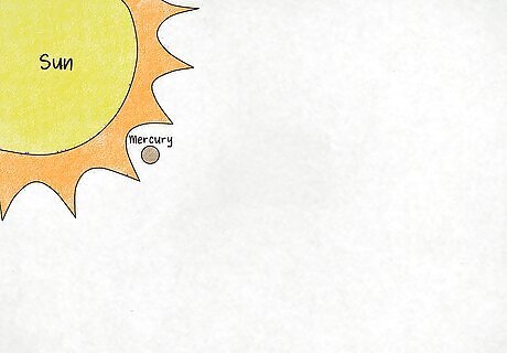 Draw Mercury to the right of the sun. Mercury is the smallest planet in the solar system, and it’s the closest planet to the Sun. To draw mercury, draw a small circle (remember, it needs to be smaller than the rest of the planets you’ll be drawing), and color it in dark gray. Like Earth, Mercury has a liquid core and a solid outer crust.