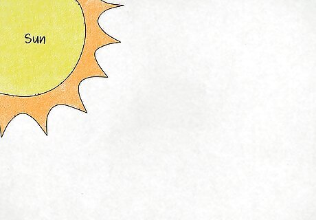 Draw the Sun near the left side of the page. The sun is the largest body in the solar system, so draw a large circle to represent it. Then, color it in with orange, yellow, and red to represent the hot gasses that it’s made up of. Remember to leave enough space on the page to draw all of the planets. The Sun is made up of mostly helium and hydrogen gas, and it's constantly converting hydrogen into helium through a process called nuclear fusion. You can draw the sun freehand, or you can trace a round object or use a compass.