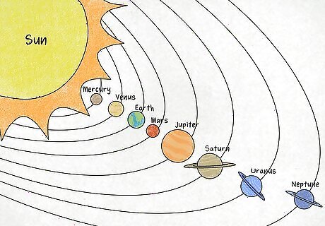 Sketch the orbital path of each planet to finish your drawing. Every planet in the solar system orbits around the sun. To show this in your drawing, draw a curved path coming off of the top and bottom of each planet. Extend the paths toward the Sun and off the edge of the page to show that each planet travels around the sun. Make sure none of the orbital paths you draw intersect with each other.