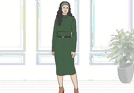 Sweater dress This timeless piece works well for any occasion! Wear a bodycon sweater dress to look glamorous in an outfit that still screams "autumn," or an A-line silhouette paired with tights for a more conservative and casual ensemble. Dress it up even more with statement earrings, knee-high boots, and a bold red lip—or dress down with a messy bun and UGG boots.