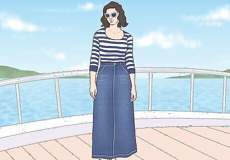 Boat Life Fall Outfit The chilling-on-a-yacht look isn’t just for summer—you can dress nautically all year round! Pair a preppy white-and-navy striped sweater with an ankle-length denim skirt. Slip on a pair of cool, strappy black flats and some thick-rimmed white sunglasses. Open seas, here you come!