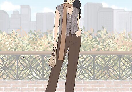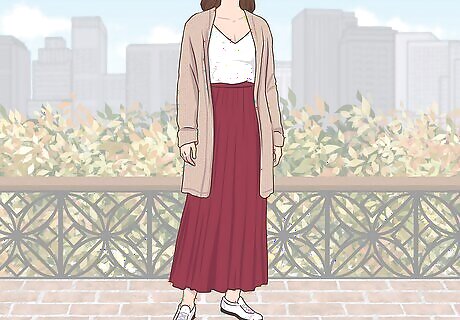 Shop for autumn shades in light fabrics like linen and thin cotton. If you live or spend a lot of time in a hot climate, you might feel like you’re missing out on all the cozy fall fashion trends! But you don’t have to withdraw entirely from sweater weather participation—if you live in a sunny area, look for light, layerable items that come in autumn colors but don’t come in heavy materials. Think cranberry-colored gauze, pumpkin orange linen, ochre yellow cotton, and terra cotta crochet. You can still add autumnal layers with these lighter fabrics. A thin cotton top, crocheted duster cardigan, or linen maxi skirt can all give off those fall ~cottagecore~ vibes without giving you heat stroke!