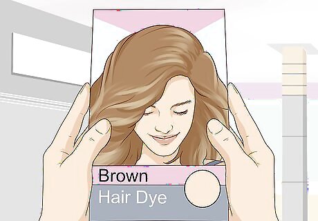 Purchase a box of brown hair dye. Head down to your local pharmacy or general store and find the hair dye section. Hold the boxes of brown dye next to your skin to help you decide which shade you like best. This will help you to imagine what it will look like next to your face. The colour on the box is a good indicator of how the colour will look on your hair. If you feel indecisive about which colour looks best, bring a friend with you and ask their opinion. If your hair falls below your shoulders or is very thick, purchase 2 boxes of dye. If you are dying grey hair, choose a colour that says “natural”. For example, “natural chestnut” or “natural light brown”. Additionally, read the label to make sure it says "grey coverage" or something similar. If you have platinum blonde or light blonde hair, start with a lighter filler color than the brown you want. If you go right into a dark brown, it may look green or muddy.
