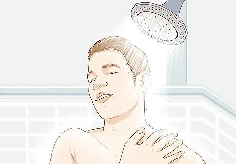 Take a shower and rinse the excess dye out of your hair. Remove the shower cap and get into the shower. Place your hair under the flow of water and let the water pressure rinse any excess dye out of your hair. Keep your hair under the water until no more dye is leaking from your hair. Rinse your hair with warm water.