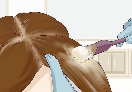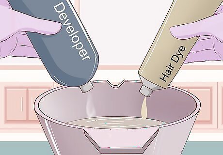 Mix the dye and developer according to the instructions on the box. Open the box of dye and carefully pour it into a disposable bowl, then add the developer and mix the two together using the included brush. Place the bowl in the bathroom sink so that any spills can be easily washed away.