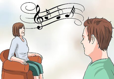 Find music that has a positive association. You'll need a variety of music when using music therapy. Since songs create different feelings, it's a good idea to have music for different moods. Look for songs that the person has a positive association with. You can choose music that: Was their favorite song growing up Was a special song the person shared with someone special Was a song played at a special occasion Was played during the time the person was between the ages of 18 and 25 years old