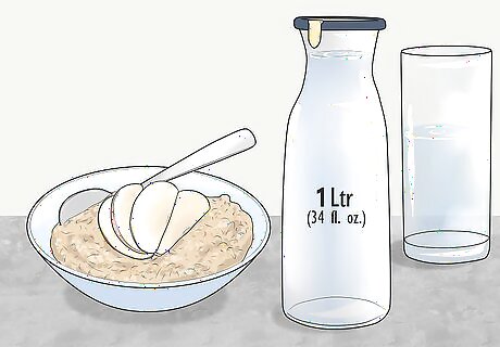 Eat a carbohydrate-rich breakfast on race day. Don’t eat gels for breakfast. Eat a hearty breakfast made up of carbohydrate-rich foods, such as a bowl of oatmeal with an apple or 2 slices of toast with jam or honey and a banana. Make sure to drink at least 1 L (34 fl oz) of water with your breakfast as well. Although most gels will say to eat a serving 30 minutes before the race, it is far better to fill your body with less simple sugars so that you build a solid store of both complex and simple carbohydrates. Tip: If you want a snack right before the race starts, try having a banana, an energy gel, or an energy bar.