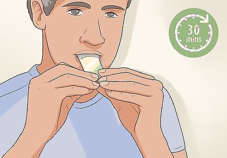 Follow up the gel with water. Take a few sips of water after you swallow the gel to help wash it down. If the gel was a watery consistency, then you might not need much water to wash it down. If it was a thick consistency, you might need more water. Always drink more water if you are still thirsty!