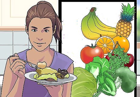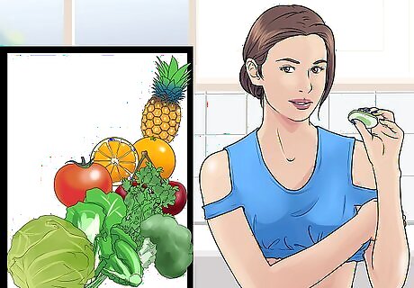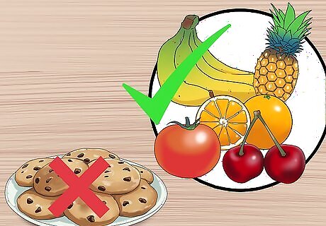 Incorporate fruits and non-starchy vegetables at every meal. Fruits and vegetables are high in fiber and thus, have a minimal impact on blood sugar. Focus on fruits that have skins/seeds, such as berries. These are highest in fiber and pack the best nutritional punch. Vegetables are all highly fibrous, but cruciferous vegetables are especially beneficial. At mealtimes, make sure at least half of your meal is fruits and non-starchy vegetables. Try a fresh, green salad with vegetable toppings, such as bell pepper, cucumber, and tomato, or eat a light mix of fresh peaches, pears, and apples.