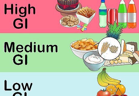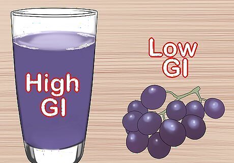 Stick to less-processed foods. The more processed your food is, the more likely it is to have a higher GI. Of course, this rule applies to foods like whole wheat bread versus white bread, but it also applies to foods like whole fruit versus fruit juices.