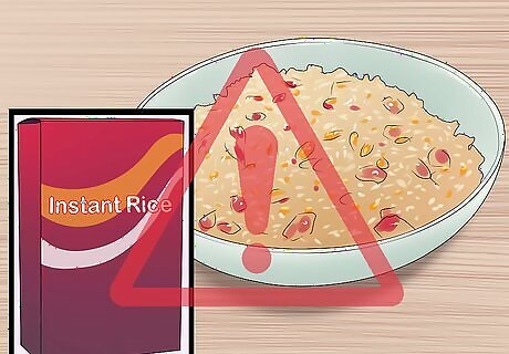 Skip instant foods. These foods, such as instant rice often have a higher GI, so stick to foods you cook yourself. Instead of instant rice, cook brown rice or converted long grain rice for yourself, both of which have lower GIs.