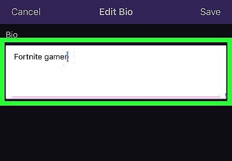 Open Twitch. This app icon looks like a white chat bubble on a purple background. You can find this on either your home screen, in the apps drawer, or by searching. While you are not able to edit as much of your profile from the mobile app as the desktop app or website, you can edit your bio.