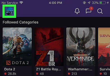 Login to https://twitch.tv in your web browser. This method works on computers, phones, and tablets. If you're using a phone or tablet, you will be redirected to the mobile site and need to switch to the desktop version. Here's how: Chrome: Tap the three-dot menu at the top right of the website below the address bar, and then tap Switch to Desktop Mode. Safari: Tap the square with an arrow at the bottom to open the sharing menu, swipe across icons, and then tap Request Desktop Site. You can also use the desktop app since the process is identical. This app icon looks like a white chat bubble on a purple background, and you can find it in either your Start menu or Applications folder.