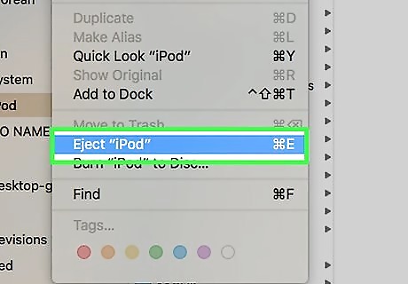 Click Eject. It's located towards the bottom of the menu. Doing so will allow you to safely unplug your iPod from your computer.
