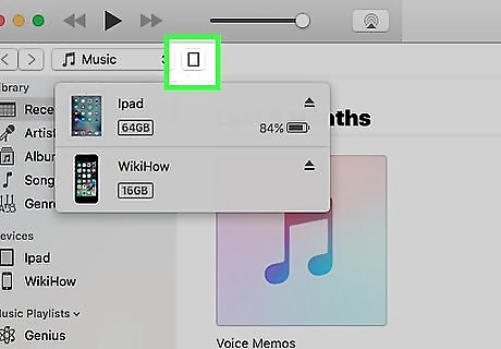 Click on the device icon. The device icon is located toward the top-left corner of the screen. Clicking on it will display all your connected devices. If you're using iTunes 11, click the device icon at the top-right corner of the screen. If you're using iTunes 10 or earlier, your device will appear in the pane on the right side of the screen.