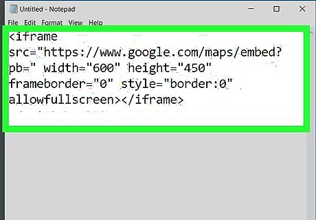 Navigate to where you want to embed the Google Map code. In applications like Dreamweaver, you can see what the code translates into on a web page, so you can easily navigate through the HTML code. Without those applications, you will need to know where you are on the web page by looking at the code.