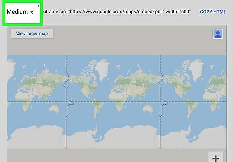 Select the size of the map you want. Next to the field of text, you’ll see SMALL, MEDIUM, LARGE, or CUSTOM SIZE. Click the small arrow pointing down to change the map size.