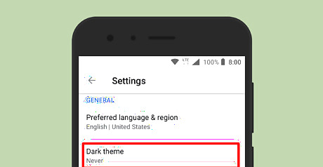 Finished. The dark theme can be extremely helpful at night to prevent eyestrain and it will also help you save your mobile phone's battery life. Choose “Never” from the dark theme settings to turn off the dark theme.