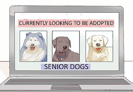 Target senior citizens to adopt senior dogs. Senior dogs make excellent companions for senior humans. Companion animals, such as dogs, provide many benefits for the owner. For instance, they provide physical activity, increased social engagement, love and affection, and some believe they even contribute to lower blood pressure and cholesterol. As a result, senior dog adoption is a fantastic way to provide senior humans with companionship and purpose during the latter stages of life. Provide senior citizens with added incentives to adopt a senior dog. For example, some shelters provide senior citizens with a discount on adopting senior dogs. This could be as much as 50% off in order to help encourage senior dog adoption. Senior dogs can also come with a starter kit and food to help in the transition.
