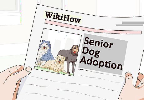 Create special programs to adopt out senior dogs. Many shelters will create special programs to help with adopting senior dogs. For instance, some shelters focus exclusively on senior dog adoptions and all of their promotional material is dedicated to senior dog adoption. Alternatively you could try providing extra incentives and programs for senior dog adoption. November, for example, is senior dog adoption month. Throughout the month of November your shelter could provide discounts and added incentives for senior dog adoption. You could also try reaching out to local media sources such as television, newspapers, and radio programs to help advertise senior dog adoption.