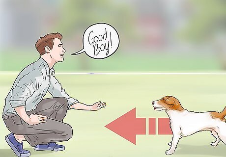 Use a variety of rewards. Dogs will get bored if they are given the same reward every time they successfully complete recall training. Vary the rewards you give your dog to maintain its interest. For instance, if your dog comes to you when called, use verbal praise to reward it. Then, the next time it comes to you, give it a doggie treat.