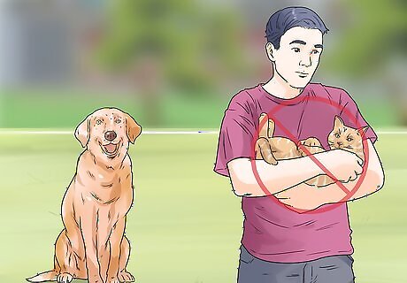 Avoid distractions. You want your dog to have its full attention on you when you’re training their recall. If there are lots of noises or other animals around, you dog will be distracted. If you have other animals, remove them from the yard before you train your dog’s recall. Choose a time of day when traffic is low and there aren’t lots of people making noise.