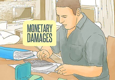 Include monetary damages in the complaint. If you’re looking to have the tenant pay overdue rent, late fees, court costs, or attorney fees, be sure to include that when completing the complaint form. If you don’t, you’ll waive your right to address those issues in the eviction hearing.
